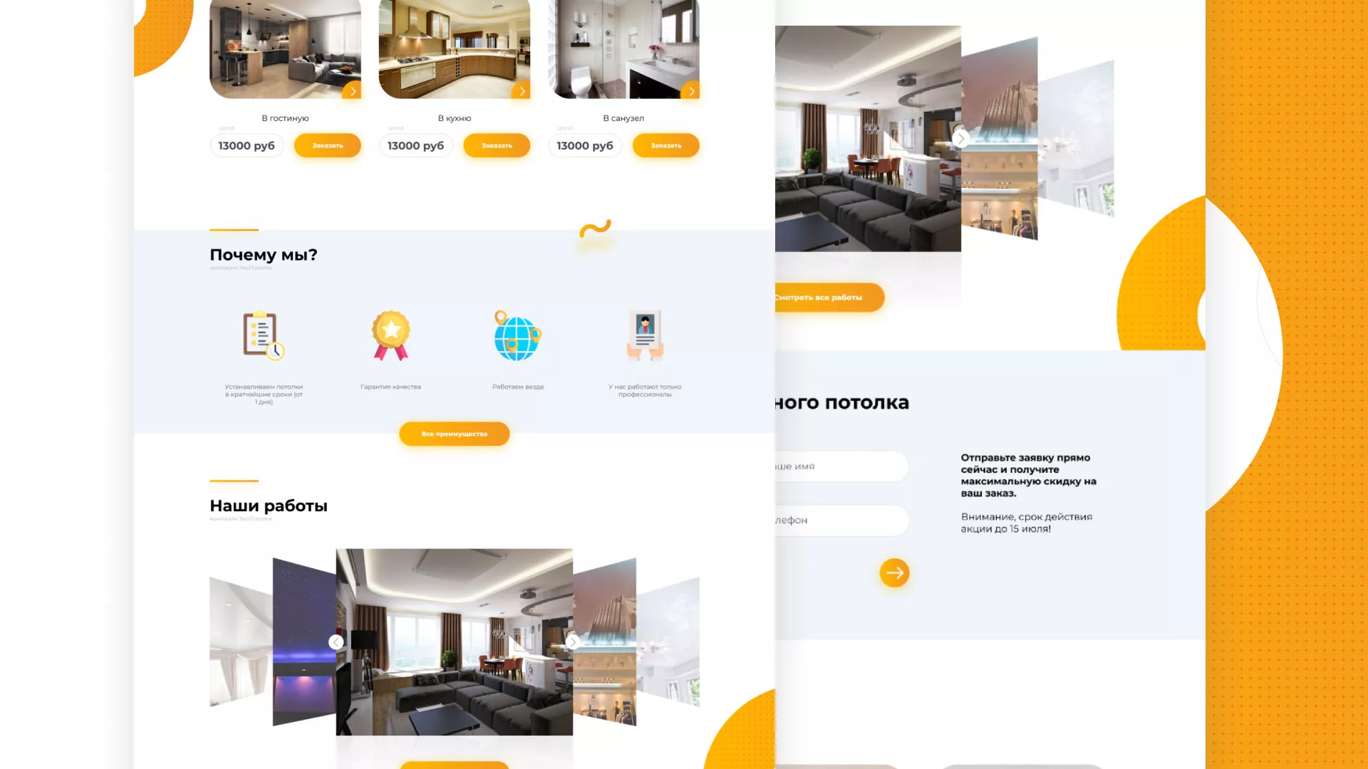 Вам нужна разработка сайта по натяжным потолкам в Великом Устюге? Специалисты компании «Мультзавод» готовы помочь! Мы предлагаем большой выбор уже готовых вариантов, а также можем создать и что-нибудь новое!